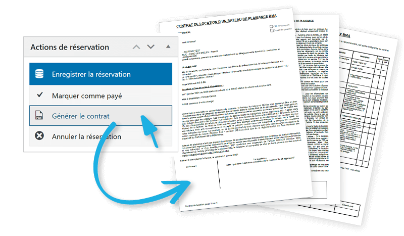 Plus besoin de remplir à la main votre contrat de location : toutes les informations de la réservation sont automatiquement reprises pour générer le contrat.
